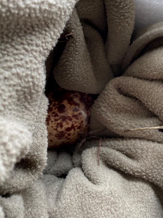 The two eggs were carefully put in the electric supervisor’s running vehicle to stay warm, while crews moved the nest from the energized pole onto the nest platform. Once the nest was arranged onto the platform, the eggs were retrieved and placed into the nest.