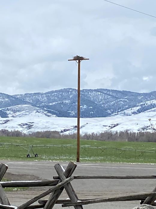 Butte, Mont. – July 5, 2022 – The move in early May of an osprey nest built on an energized power pole to a safe location on a nest platform in Gallatin Gateway is a success. Two chicks hatched from the eggs were spotted being brooded and fed in late June.