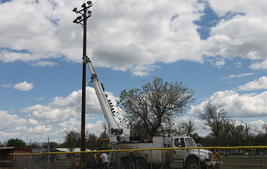 Ace Electric provided labor and some materials for the electric work for the lights. CED Billings donated materials. Midway Rental in Laurel donated the use of an 85-foot lift. Croell Inc. donated gravel to set the new poles. The city of Laurel recycled the old light poles and made sure the field’s sprinkler system worked.