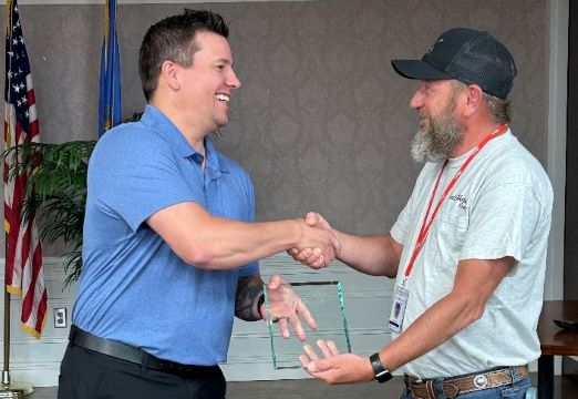 Wednesday, June 12, 2024, during an all-company safety meeting, leaders presented MacDonald, a three-year employee with NorthWestern Energy, with the MEA Energy Association Life Sustaining Award for the heroic actions he made to save the life of 82-year-old George Piper. Last January, Piper took a fall just as MacDonald came around the corner in his NorthWestern Energy vehicle. MacDonald watched him stop, then fall straight back. Though it was icy, it didn’t seem he’d slipped. MacDonald knew something was wrong.